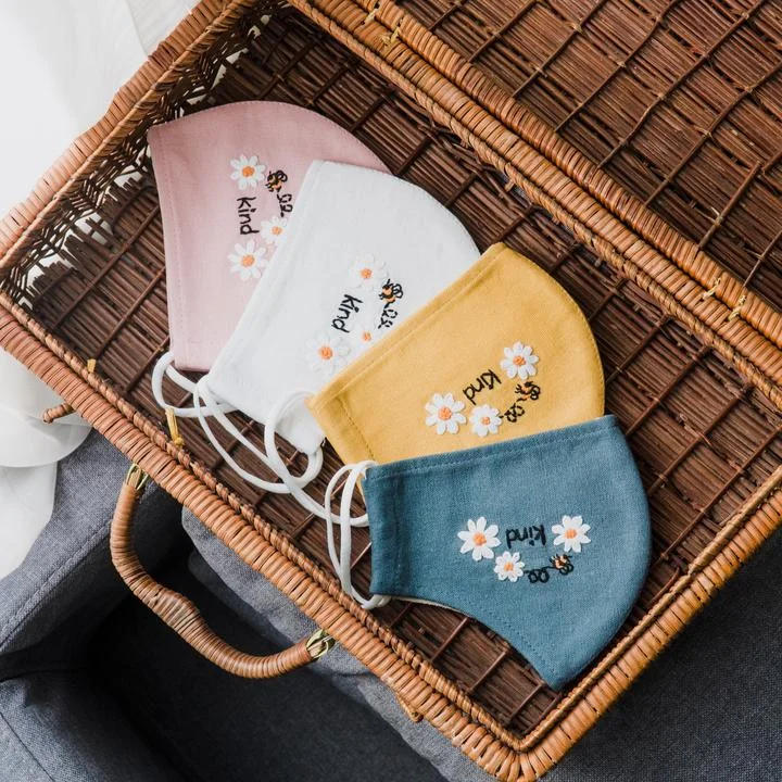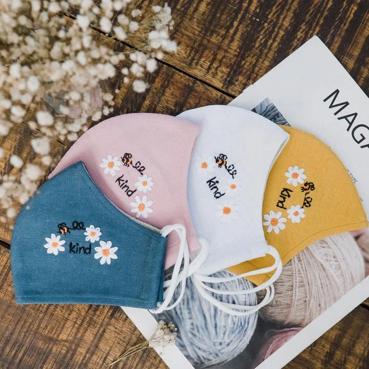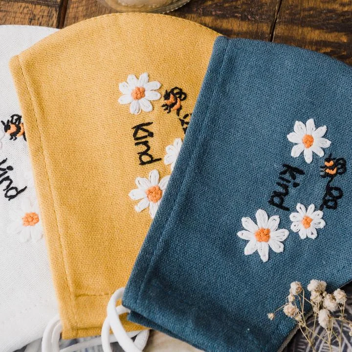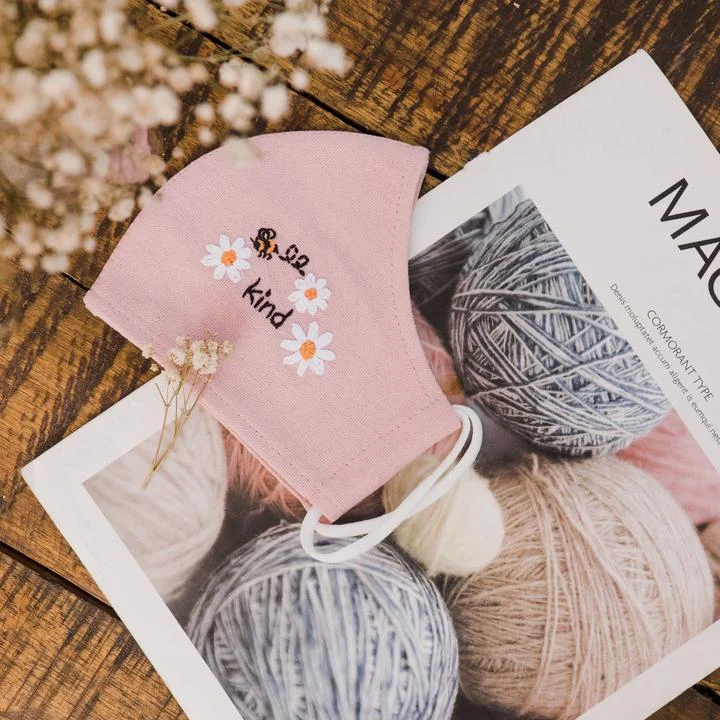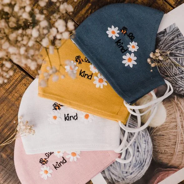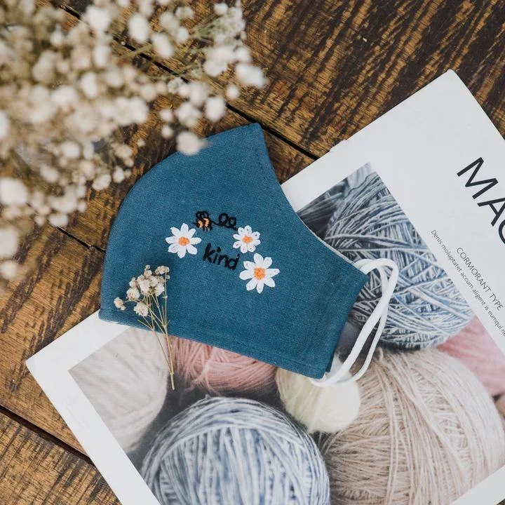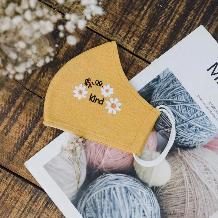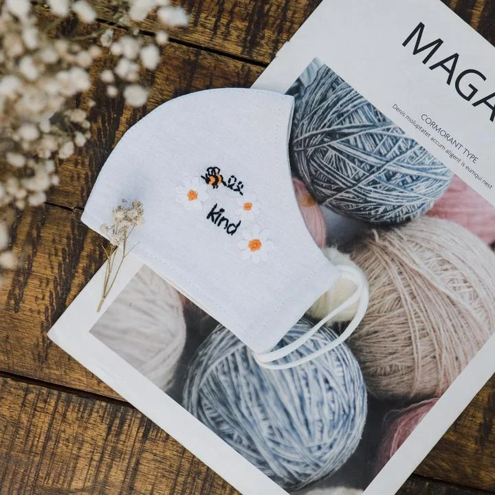 Bee Kind Hand Embroidery Natural Linen FaceMask