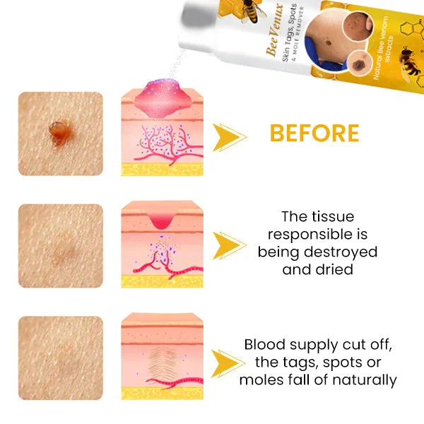 Do you struggle with skin tags, dark spots, or moles that affect your confidence? Have you tried countless products without seeing real results? It’s time for a solution that truly works. Discover the transformative power of BeeVenux™, the ultimate skin tags, spots, and mole remover crafted with the miraculous properties of bee venom.