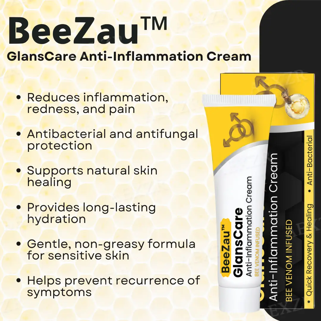 BeeZau™ GlansCare Anti-Inflammation Cream has undergone thorough testing to ensure its safety, effectiveness, and suitability for sensitive skin. Trusted by healthcare professionals, BeeZau™ is formulated with natural ingredients to provide gentle yet powerful relief from balanitis. Available through trusted sources, BeeZau™ offers a high-quality solution that you can rely on for effective, long-lasting results. Experience the care your skin deserves, backed by proven effectiveness and natural ingredients.