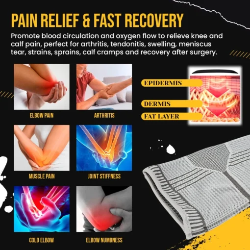 The BendEase™ Arthritis Thermo Elbow Support is constructed from premium graphene material, which retains the body’s natural heat, directing therapeutic warmth to the joint. The compression sleeve offers stability, minimizing strain on the impacted area and providing supplementary support for weakened or injured elbows.