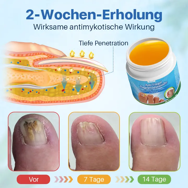 Die Biancat™ Antifungale Nagelreparatur-Salbe ist mit leistungsstarken feuchtigkeitsspendenden Inhaltsstoffen formuliert, die die Hydration für trockene Nägel und Haut einschließen. Sie minimiert effektiv das Risiko von Trockenheit, die zu brüchigen Nägeln und Schäden wie Absplitterungen führen kann. Darüber hinaus verfügt die Creme über außergewöhnliche nährende Eigenschaften, die helfen, bereits beschädigte Nägel stärker und gesünder wachsen zu lassen. Ihre nicht fettende und geruchsfreie Formulierung sorgt für sofortige Ergebnisse und bleibt sanft zu allen Nageltypen. Es ist die ideale Lösung, um lästige Nagelinfektionen fernzuhalten, und lässt Sie in nur zwei Wochen konsequenter Anwendung glänzende, gesunde und schöne Nägel haben!