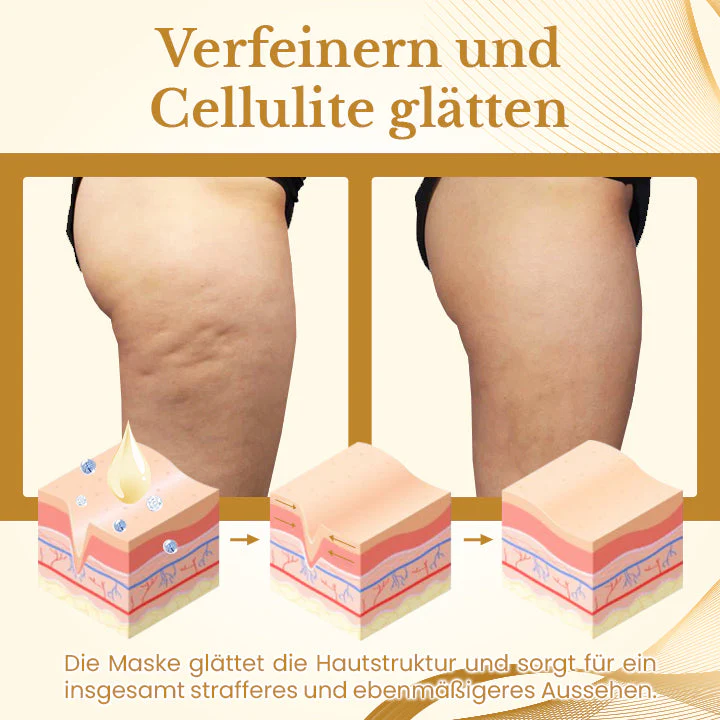 Cellulite verfeinern und glätten: Entwickelt, um Cellulite aktiv zu bekämpfen und zu reduzieren, glättet diese Maske die Hauttextur und fördert ein insgesamt festeres, gleichmäßigeres Aussehen.