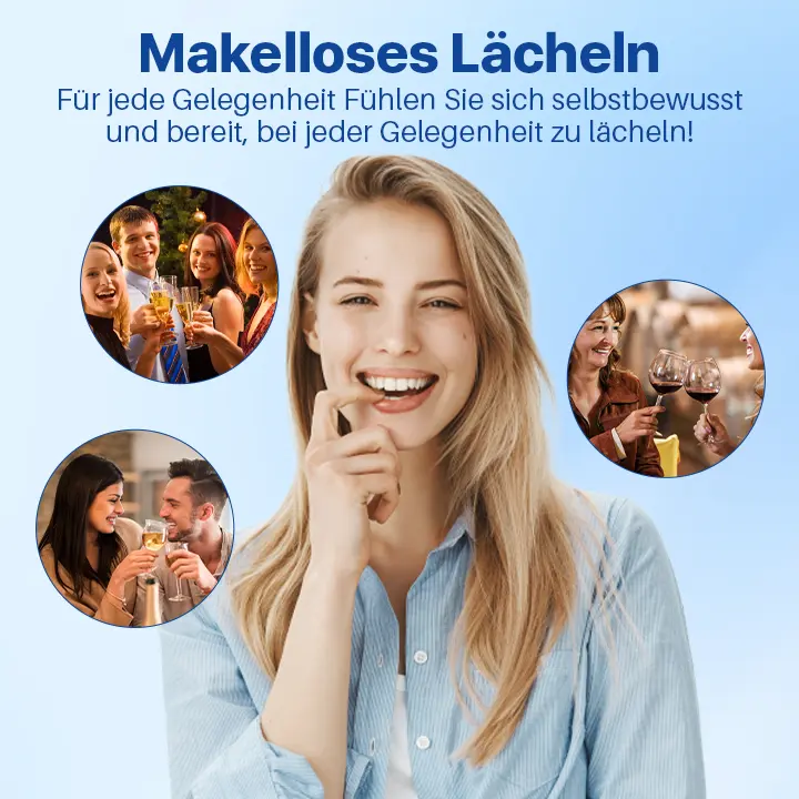 Perfekt für jeden Anlass: Ob glamouröse Veranstaltung oder entspannter Tag mit Freunden – das Biancat™ ComfortSmile Silikon-Prothesenkits sorgt dafür, dass Ihr Lächeln immer makellos ist. Von besonderen Feierlichkeiten bis hin zum Alltag können Sie sich darauf verlassen, dass unser Kit Ihr Aussehen verbessert und Ihr Selbstvertrauen stärkt. Die diskrete Optik passt sich Ihrem natürlichen Erscheinungsbild an, sodass Sie sich jederzeit strahlend und selbstsicher fühlen können.