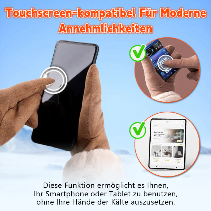 Wir präsentieren Ihnen unsere Biancat™ Handschuhe, eine perfekte Fusion aus Komfort, Wärme und moderner Technologie, maßgeschneidert für das digitale Zeitalter. Diese Handschuhe sind mehr als nur Accessoires; sie sind unverzichtbare Begleiter für Ihre Wintergarderobe. Gefertigt aus hochwertigem Wildleder, bieten sie ein weiches, luxuriöses Gefühl mit einer reichen, buttrigen Textur, die Ihrem Winteroutfit Eleganz verleiht.