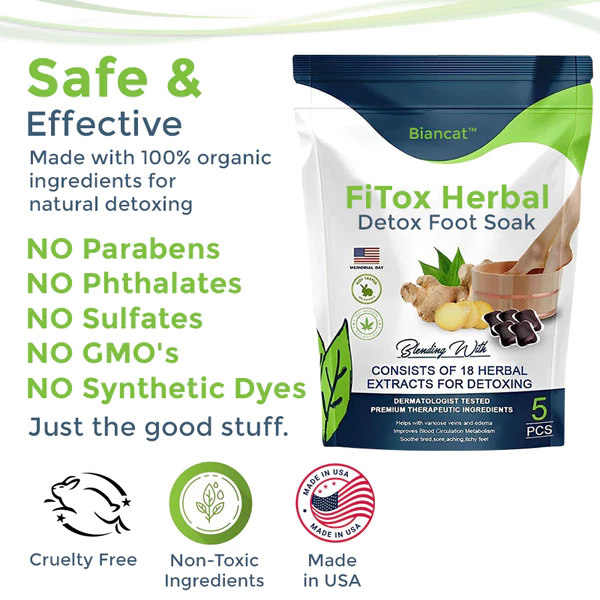 Experience the transformative power of Biancat™ FiTox Herbal Detox Foot Soak, revitalizing your body from the ground up. Purify, slim, and energize with our natural blend, boosting circulation, eliminating toxins, and unveiling a leaner, healthier you.