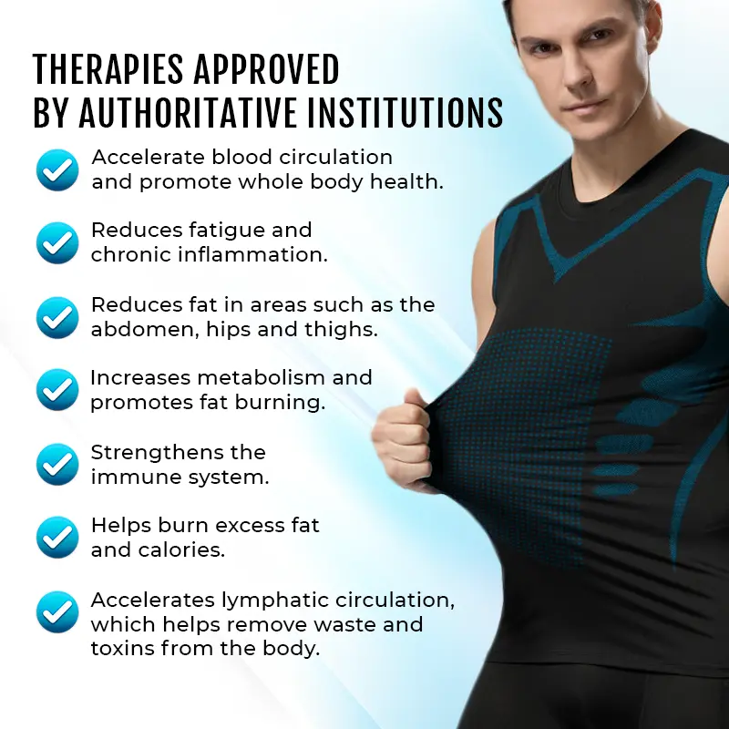 Far-infrared therapy is a pivotal feature of this tank top’s design. These rays penetrate up to 16 mm into subcutaneous tissues, facilitating the repair of damaged cells, dilating microvessels, and improving blood circulation and metabolism. The National Institutes of Health affirm that far-infrared therapy is highly effective for burning fat, reducing chest fat, and decreasing cellulite, making it a formidable tool for men aiming to enhance their physique. Moreover, consistent use can lead to increased flexibility and reduced muscle soreness.