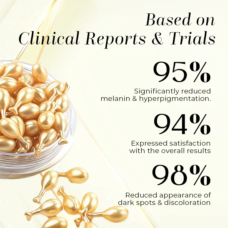 ✅ Targeted Action: The capsules work by directly inhibiting melanin production at its source, effectively clearing away any discoloration and preventing future dark spots.