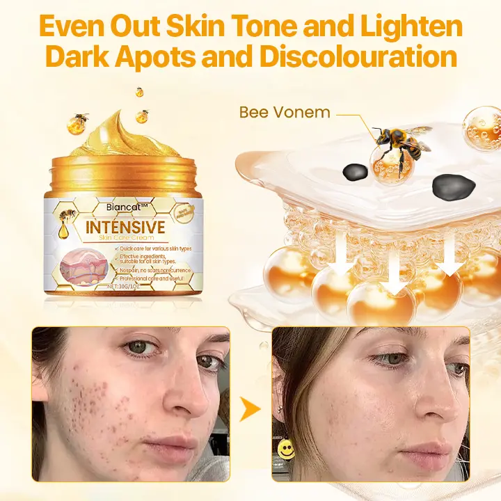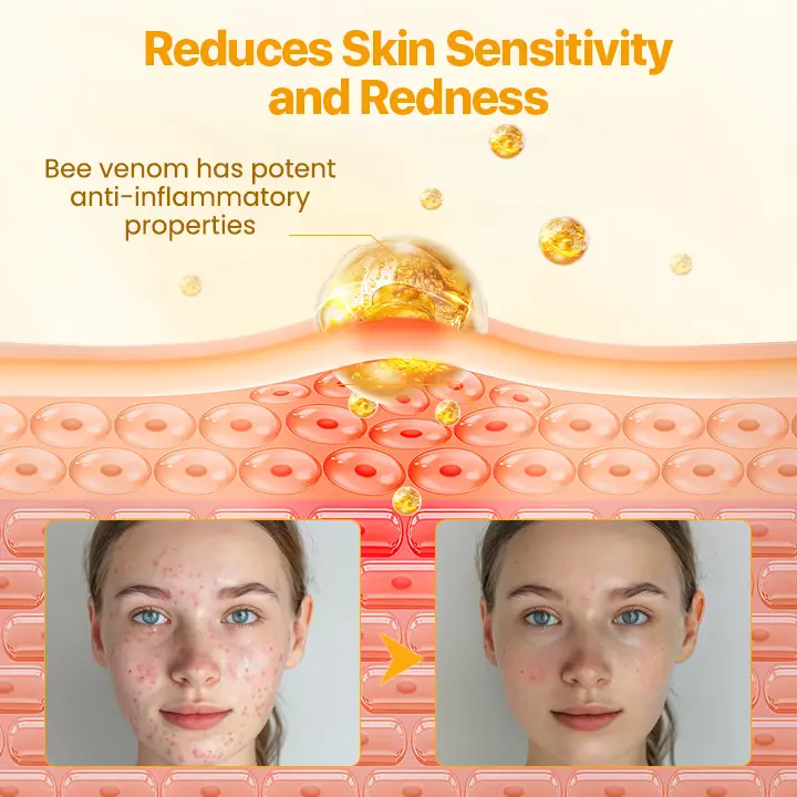 Bee Venom: Promotes skin repair and inflammation relief, restoring skin elasticity.