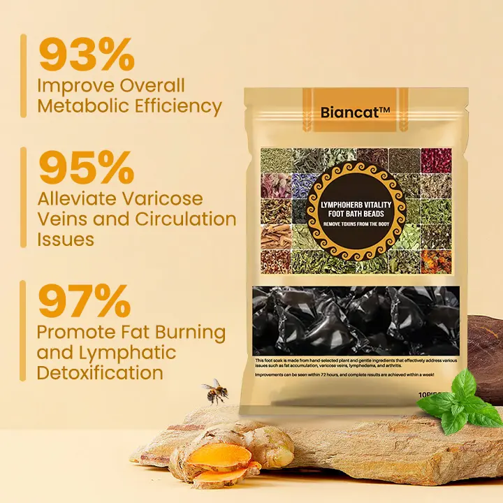 Feeling troubled with issues like oil head, varicose veins, or an oily face? Belly fat, leg muscle pain, stiffness, and fear of the cold can be overwhelming, especially when poor sleep quality affects your well-being. Recognize these challenges and seek holistic solutions. Our Biancat™ LymphoHerb Vitality Foot Bath Beads can enhance sleep quality, relieve discomforts, and lead to a more balanced and fulfilling life.