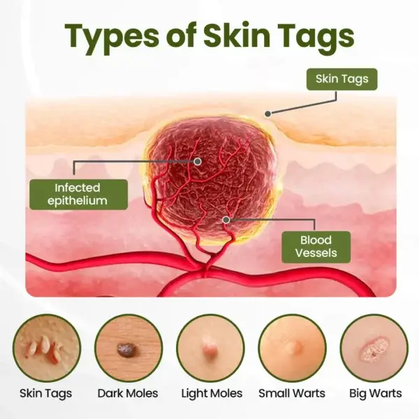 Skin tags, warts, small bumps, and rough patches often form when the skin experiences: