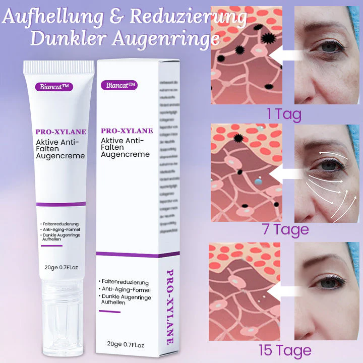 Entdecken Sie die transformative Kraft der Biancat™ Pro-Xylane Aktiv Anti-Falten Augencreme, die für jugendliche, strahlende Augen unverzichtbar ist. Hier ist, was sie auszeichnet: