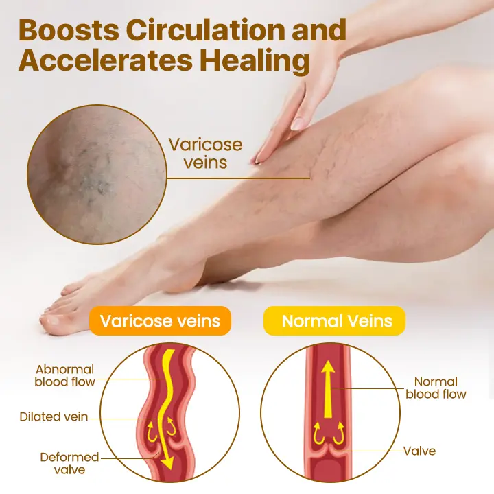 Bee venom stimulates blood flow in the affected area, which helps reduce inflammation and promotes faster healing. This not only helps minimize the visibility of varicose veins but also supports the regeneration and repair of damaged tissue, restoring vitality and a healthy glow to your skin.