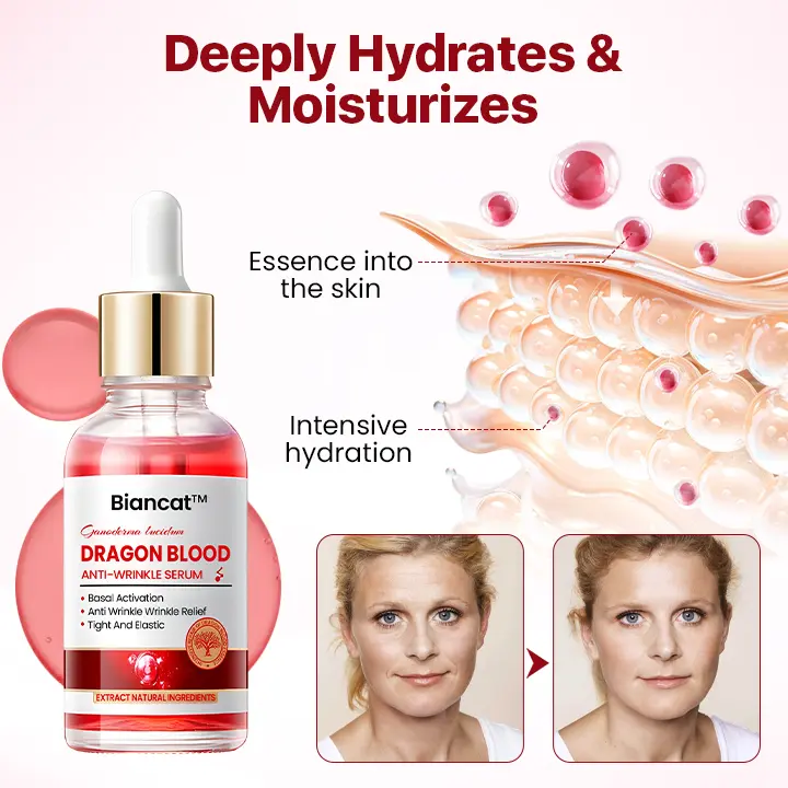 I love Biancat™ Reishi & Dragon’s Blood Anti-Wrinkle Serum! It’s been amazing for my sensitive skin—reducing redness, smoothing wrinkles, tightening skin, and evening out my tone without irritation. My pale, uneven skin, especially around my nose and cheeks, is no longer red, and the skin under my eyes looks firmer and less hollow.