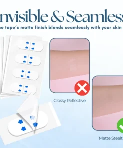 Achieve a naturally lifted look without anyone noticing your secret. The tape’s matte finish blends seamlessly with your skin, remaining virtually invisible—even under makeup. It’s your discreet beauty enhancer.