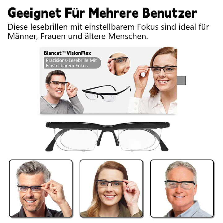 Erleben Sie perfekte Klarheit in jeder Entfernung mit der Biancat™ VisionFlex Präzisions-Lesebrille mit einstellbarer Stärke – Ihre persönliche Lösung für optimale Sicht. Unsere innovative, einstellbare Fokusbrille nutzt die Prinzipien der Brechung und Akkommodation, um Ihnen unübertroffenen visuellen Komfort zu bieten.