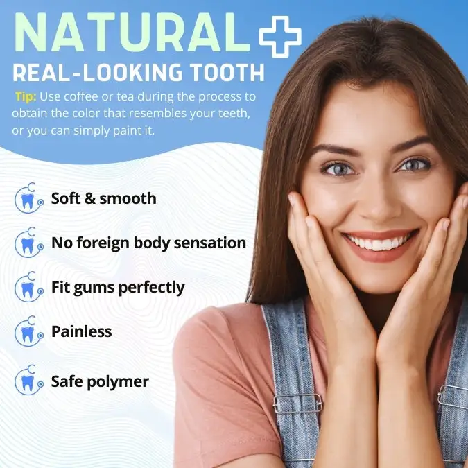 Customizable fit: thermal forming process allows for molding the false teeth to a patient’s unique shape at home