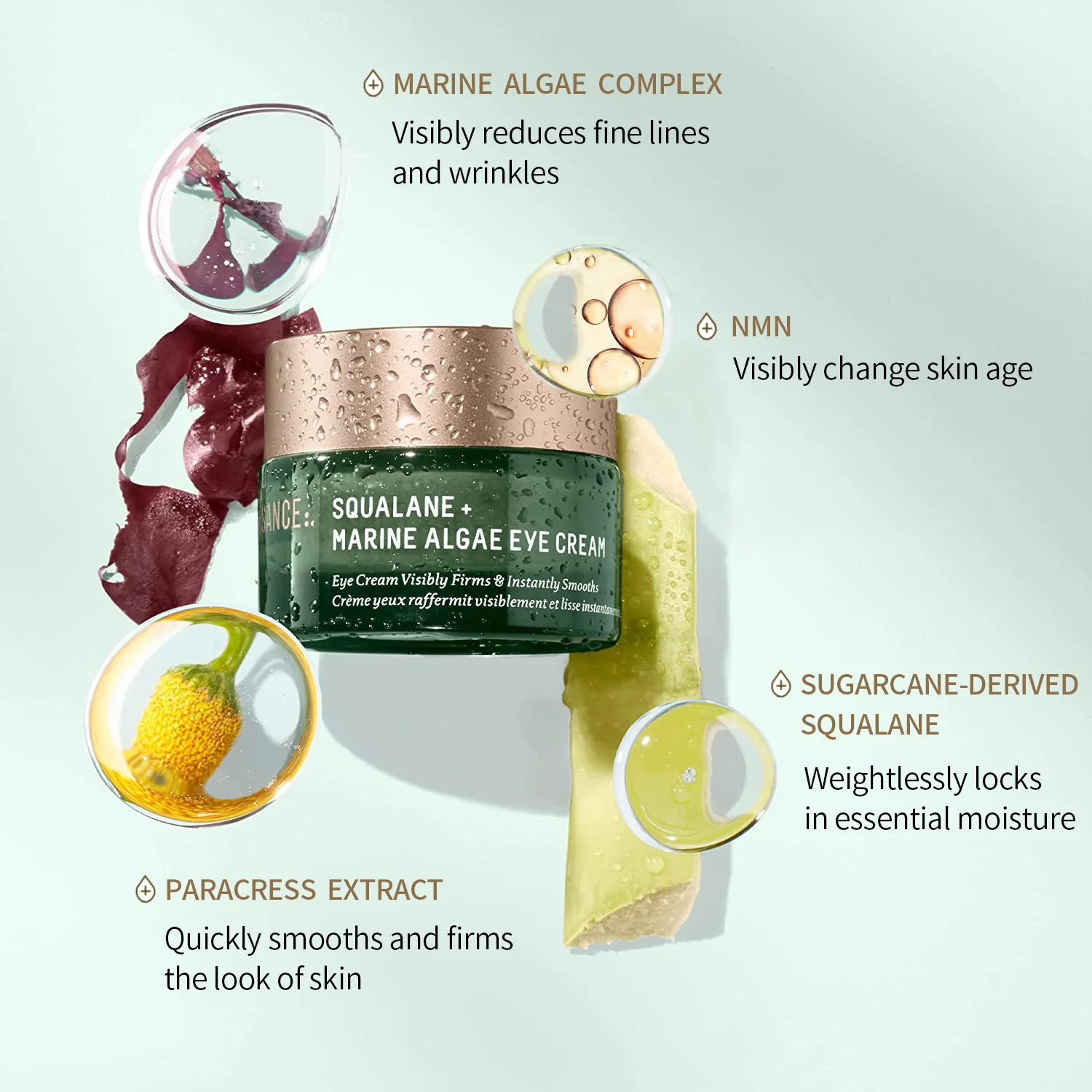 Paracress extract: Quickly smooths and firms the look of skin,