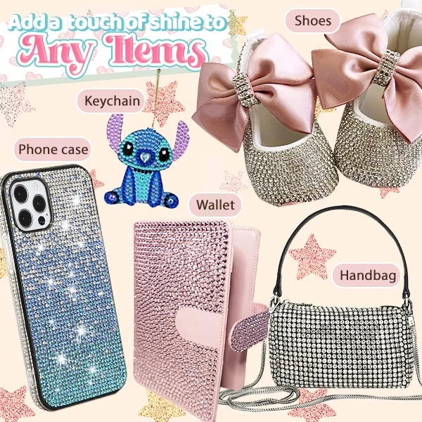 Kid-Friendly Diamond Stamping Professionally made with the user’s safety and comfort in mind. It is ideally lightweight and it does not contain any sharp edges or surfaces that might scratch or cut the hands when in use.Simply load the gems, press and bling without complex application!The handle can be open for styling larger items, and it can be closed and used as a clip when stamping on smaller items. No more time-consuming, individual messy gluing needed. Ideal for beginners, children, hair stylist, DIYers, fashionistas, and so on.