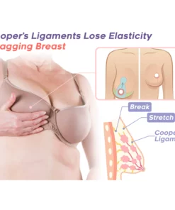 As one ages, Cooper’s ligaments that form the basis of breast tissue weaken and lose their elastic properties. This results in reduced volume in the breast, which can be especially visible during menopause due to decreased fat and tissue support.