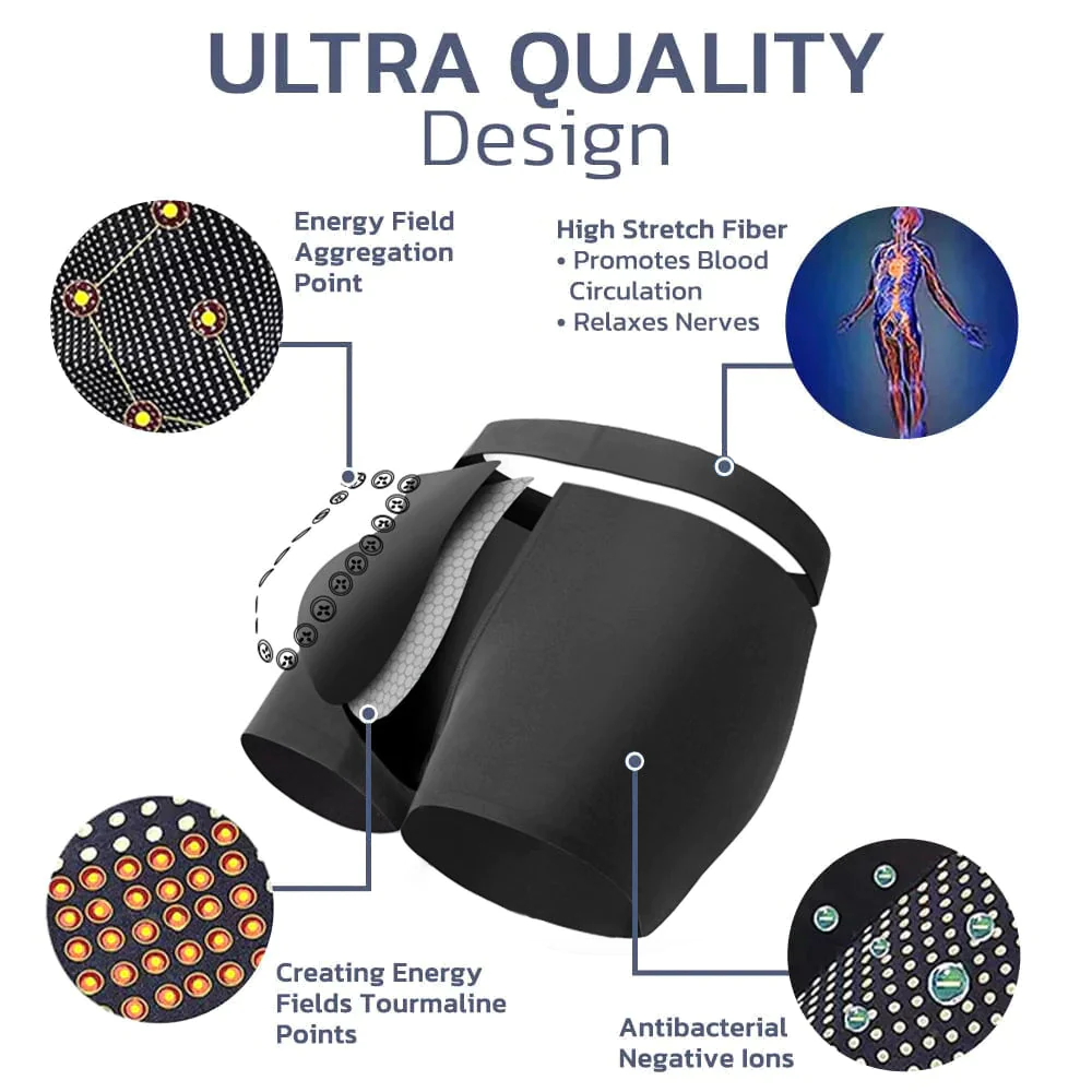 Power of magnets. Specially designed for males and inspired by ancient non-invasive Magnet Therapy and Tourmaline technology. This adopts 22 magnets and Tourmaline fabric to generate a magnetic field around the ‘private area’ and the ‘back part’ to improve blood circulation.