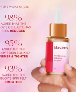 Blusoms™ 7 Herbaceous Cellubica Body-Oil assists in flushing out toxins and excess fluids, relieving your skin of unwanted puffiness and leaving it looking firm and sculpted. Our innovative blend of botanical extracts penetrates deep into the skin, effectively breaking down fat cells and promoting their removal from the body. Say goodbye to those pesky love handles and dimples!