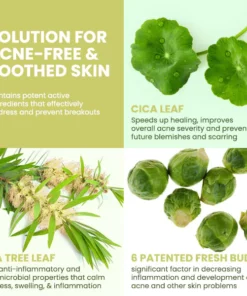 Centella Asiatica Leaf Water, a key ingredient in Blusoms™ ClearAcne Defense Gel, offers multiple benefits in fighting acne. With its anti-inflammatory properties, it soothes and calms irritated skin, reducing redness and swelling associated with acne breakouts. Additionally, it promotes the healing of acne blemishes and prevents scarring by stimulating collagen production and aiding in the regeneration of damaged skin cells.