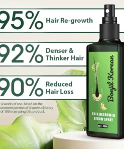 Bonjil Korean Hair Regrowth Serum Spray is the best way to grow your hair back from the root. Using homeopathic medicines, this herbal serum spray helps treat and prevent hair loss from even the most severe male pattern baldness.