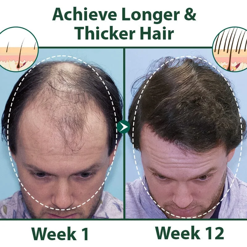 “Bald spots started getting thicker again only after 8 weeks of use. They thinned out a lot over the last few years so I’m really happy to see them regrowing, and when I part my hair, you can’t see as much of my scalp anymore. My hair is actually growing back!