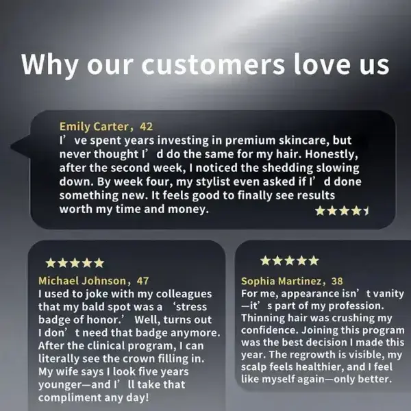 “This is my second month using this spray, and I’m already seeing a difference. My parting was so wide before, you could even see my scalp in photos. Now, it’s noticeably smoother. Best of all? This spray doesn’t leave any stains. My wife even noticed some new hair growing near the crown of my head last week.”