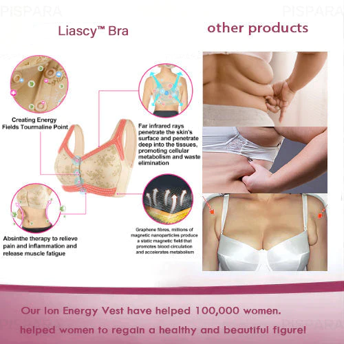 It stimulates over 800 reflex points in the abdomen. The Liascy™ Detoxonic LymphVibra Bra generates energy without the need for any other power source, such as electricity. These ionic shaping bras are based on ion therapy, far-infrared therapy, and mugwort therapy, providing users with multidimensional massage and stimulation. It helps effectively stimulate blood and lymph circulation, alleviate lymphedema and inflammation, and reduce fluid retention and cellulite.