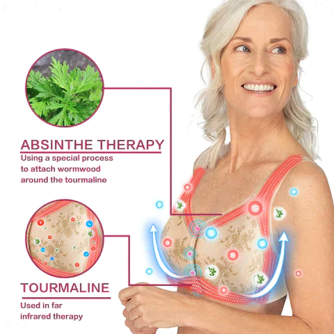 The Liascy™ Detoxonic LymphVibra Bra is immersed in wormwood liquor and utilizes a special process to secure the tourmaline, thereby releasing thujone and negative ions. It combines far-infrared therapy and wormwood liquor therapy, providing relief for pain in different parts of the body, muscle relaxation, and anti-inflammatory effects. Long-term observations have shown that it can also prevent and treat health issues such as cellulite, swollen lymph nodes, edema, fibroadenomas, cysts, and even contribute to breast cancer prevention.