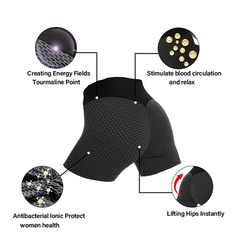 The Tourmaline of the shorts contain tourmaline minerals (precious natural minerals) that stimulate the Tummy and Hip muscles through acupressure, promoting blood circulation and relaxing the body. It is cleverly designed, making you look smooth and shaped from any angle. It is skin-friendly and breathable when worn, 4 times lighter than ordinary shorts, but with 10 times the get in shape effect on the body, you can create a perfect body curve overnight!