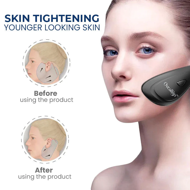 The Oveallgo™ JawFit Pro Face Sculptor is a facial rejuvenation tool that uses EMS (electrical muscle stimulation) to provide safe, non-surgical face and neck lift results. It works by stimulating the muscles in your face, which encourages them to contract, tighten and relax repeatedly, which results in increased blood flow and nutrients being delivered to the surface of your skin. This helps keep your skin taut and reduces wrinkles, sagging cheeks , droopy skin and other signs of aging. This effect causes the skin around the muscle to be pulled upwards, resulting in a tighter and firmer appearance overall. Copyright possessed by Oveallgo™ Group