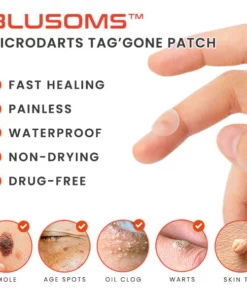The Blusoms™ MicroDarts TAG’Gone Patch is effectively designed to remove skin tags with no pain and turn the skin healthy. It is formulated with 100% organic ingredients and is ideal for dry, oily, normal, and combination skin. The unique application technique is convenient and comfortable for removing tags.