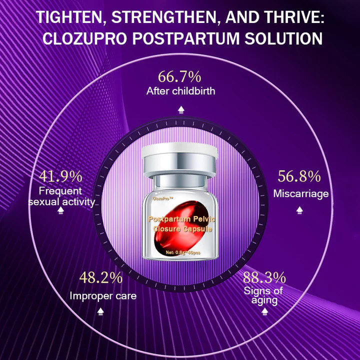 Understanding these concerns, we developed ClozuPro™ capsule to restore the pelvic floor, strengthen muscles, and provide support, addressing instability, reducing urinary incontinence, and promoting vaginal tightness for optimal postpartum recovery.