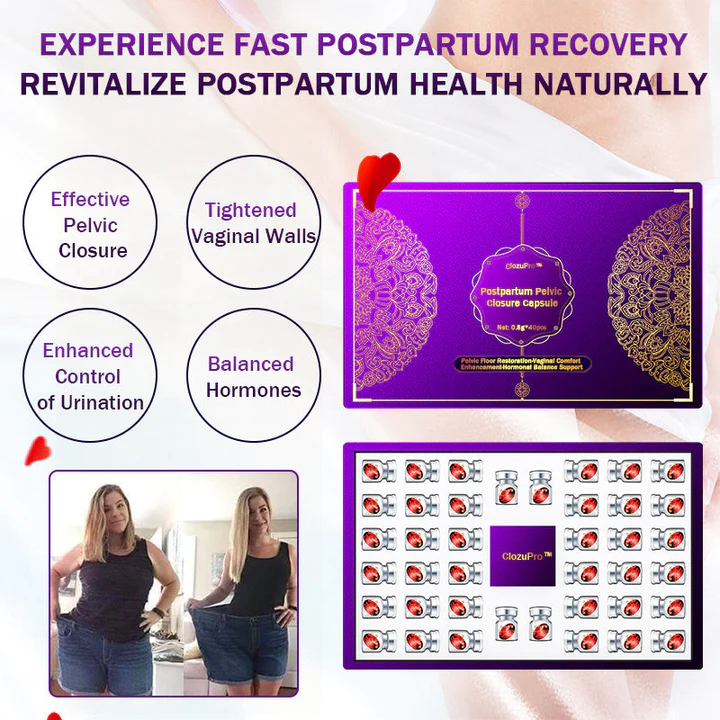 ClozuPro™ capsule contains ingredients that promote tissue healing, reduce inflammation, and strengthen pelvic floor muscles, facilitating the restoration of pelvic floor tone and function after childbirth.