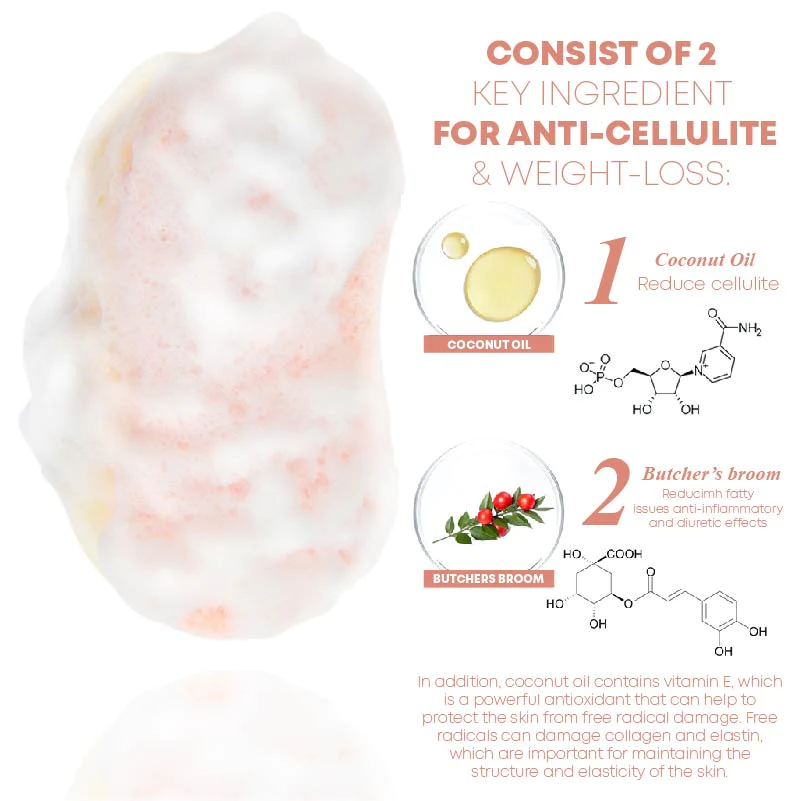 Coconut oil has been used as a natural remedy for reducing the appearance of cellulite. It is an emollient that moisturizes the skin and improves its barrier function. Coconut oil is rich in medium-chain fatty acids, such as lauric acid, which have antimicrobial and anti-inflammatory properties. These properties may help reduce inflammation in the skin, which is one of the underlying causes of cellulite.