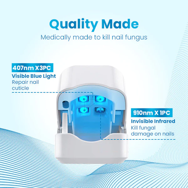 Blue light therapy is a medical method that uses a specific wavelength of blue light (470 nm) to treat nails. Blue light therapy involves exposing the nails to blue light, which penetrates the surface layer of the nail and causes a photodynamic response to the keratin in the nail. Through the photodynamic reaction, keratin combines with oxygen molecules and forms toxic free oxygen radicals that damage or kill bacteria and fungi around the nail. In addition, blue light has an antibacterial effect and can also reduce infections caused by inflammation, relieve redness, heat and pain symptoms at the inflammation site, and basically repair damage without side effects and drug resistance.