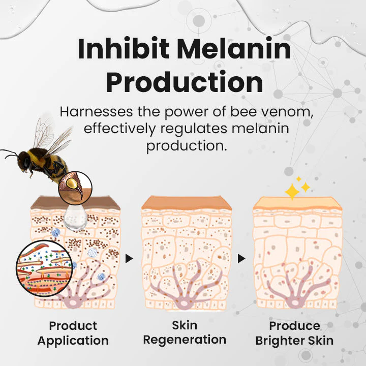 Inhibiting Melanin Production: Harnesses the power of bee venom & other potent active ingredients, it effectively regulates melanin production, disperse existing melanin clusters, and foster the regeneration of fresh, vibrant skin cells. Through these remarkable mechanisms, the cream works diligently to alleviate hyperpigmentation, resulting in a visibly brighter and more even-toned complexion.