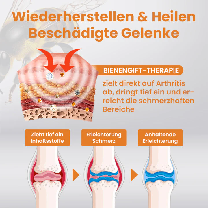 Zutaten: Bienengift, Arnica Montana, Glucosamin, Methylsulfonylmethan (MSM/DMSO2), Chondroitin Sulfat & Vitamin K2