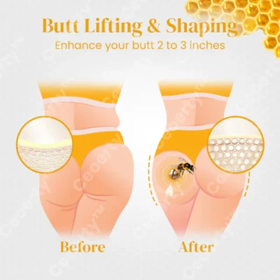 Formulated with powerful ingredients, including bee venom known for its skin-firming properties, Ceoerty™ BootyBeaute is designed to sculpt and shape your buttocks, giving you a firmer and more defined appearance. Bee venom contains compounds that stimulate the production of collagen and elastin in the skin. By increasing collagen and elastin production, bee venom can help improve skin elasticity and firmness, reducing the appearance of fine lines and wrinkles.