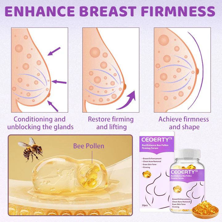 Enhance Breast Firmness 🌸Ceoerty™ BustEnhance Bee Pollen Firming Serum is rich in phytoestrogens and antioxidants, which effectively promote the healthy growth of breast tissue and enhance breast firmness. By deeply penetrating and nourishing the skin, it helps restore the elasticity and firmness of the breast skin, making the breasts firmer and more elastic. Users can notice a significant improvement in breast skin firmness and softness in a short time.