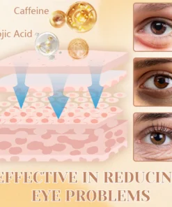 Caffeine tightens blood vessels around the eyes, reducing redness, swelling, and fluid pooling. It boosts the skin’s energy, acting as a vasoconstrictor to diminish puffiness. Caffeine also neutralizes free radicals, has anti-inflammatory properties, and improves skin texture, giving a tightened appearance around the eyes.