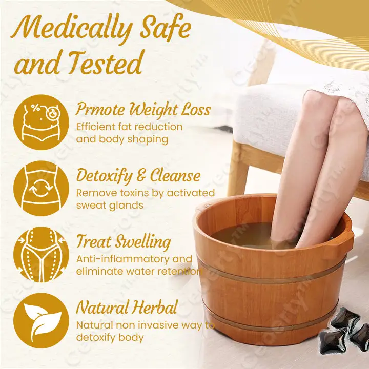 Ceoerty™ DetoxiSlim Foot Bath Beads harness the synergistic power of multiple therapeutic herbal extracts to deliver a revolutionary detoxification experience. Our unique formula is specifically designed for the feet and legs – working through transdermal absorption during soaking. This process ensures the gentle and effective delivery of natural ingredients directly into the lymphatic system. The solution aids in the removal of toxins and impurities, reducing lymphatic fluid buildup that often impedes metabolic efficiency.