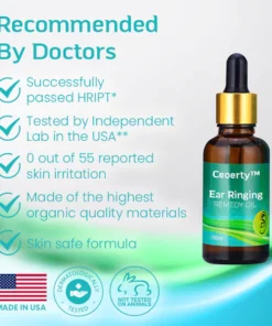 “The Ceoerty™ Ear Ringing Remedy Oil has been developed with a quick-dry formula that provides long-lasting relief, making it a preferred option over other tinnitus remedies. Formulated with natural ingredients including Angelica Root, Borneol, Ginkgo Biloba and Pine Bark, they work together to reduce inflammation, clean the ears, and improve hearing ability. These ingredients have been traditionally used in herbal medicine and have proven to be highly effective in combating bacterial and viral infections, as well as reducing inflammation and muscle pain.” – Dr. Eric H. Knapp MD Otolaryngology (ENT) General Otolaryngology/ENT