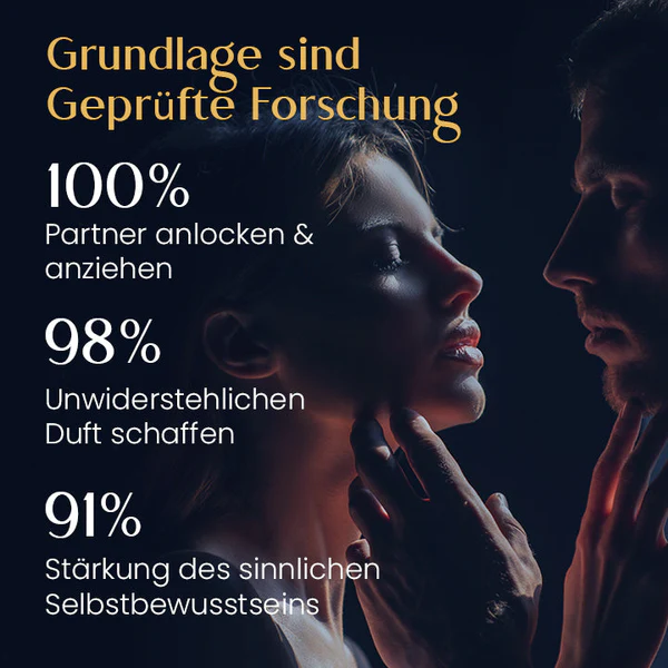 Osmologie-Experten sind zu dem Schluss gekommen, dass die als Pheromone bekannten chemischen Botenstoffe eine entscheidende Rolle bei der Stimulierung der sexuellen Anziehungskraft, des Verlangens, des Hormonspiegels und sogar der Fruchtbarkeit bei Männern und Frauen spielen. Dies kann Ihre natürliche Pheromonproduktion steigern, Ihre Attraktivität und Anziehungskraft erhöhen und dafür sorgen, dass Sie sich gut fühlen und gut riechen.