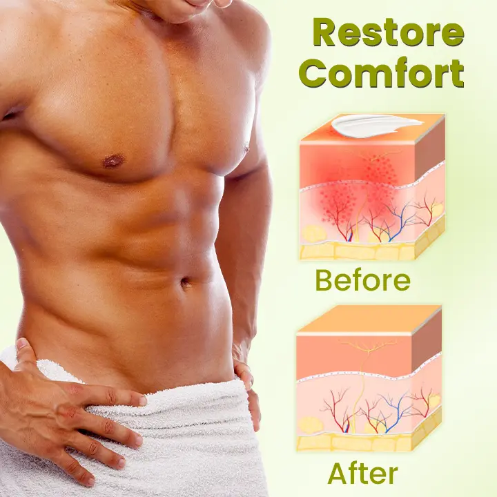 Ceoerty™ GlansCare Anti-Inflammation Cream works by deeply penetrating the skin to address the root cause of balanitis—inflammation. Its key ingredients have anti-inflammatory, antibacterial, and healing properties, helping to reduce local redness, swelling, itching, and pain. The natural plant extracts in the formula help regulate the skin’s immune response, preventing excessive growth of bacteria or fungi, while promoting repair of damaged areas. Additionally, moisturizing ingredients provide long-lasting hydration, relieving dryness and cracks caused by inflammation, and helping restore the health of the glans skin. With regular use, Ceoerty™ GlansCare effectively improves balanitis symptoms, restores comfort, and reduces the risk of recurrence.