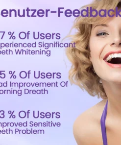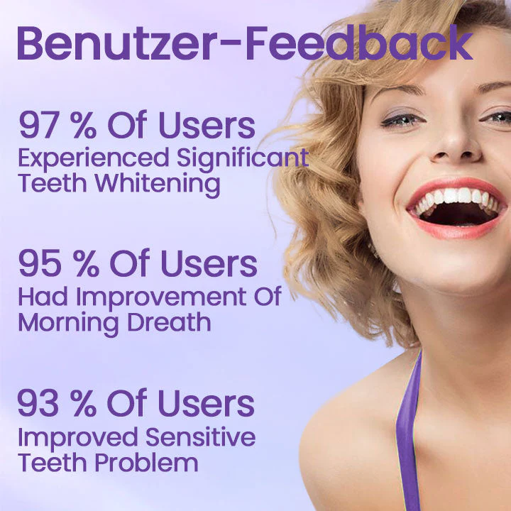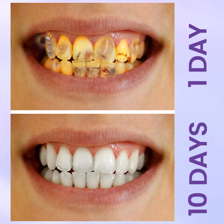 V34 uses color correction technology rather than chemical whitening treatments. Purple is the complementary color of yellow on the color wheel, and applying purple to your teeth helps to counteract the yellow undertones, conceal stains, and enhance shine. This provides an immediate and noticeable improvement in the brightness and whiteness of your teeth without the use of harsh chemicals.