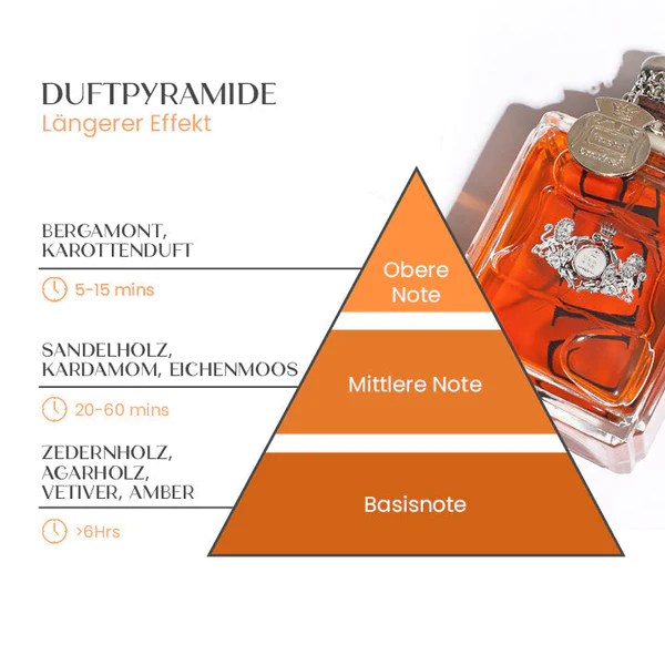 Parfüm: Bergamotte, Karotte, Sandelholz, Kardamom, Eichenmoos, Zedernholz, Agarholz, Vetiver & Amber