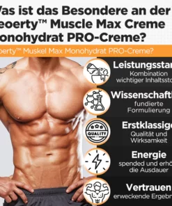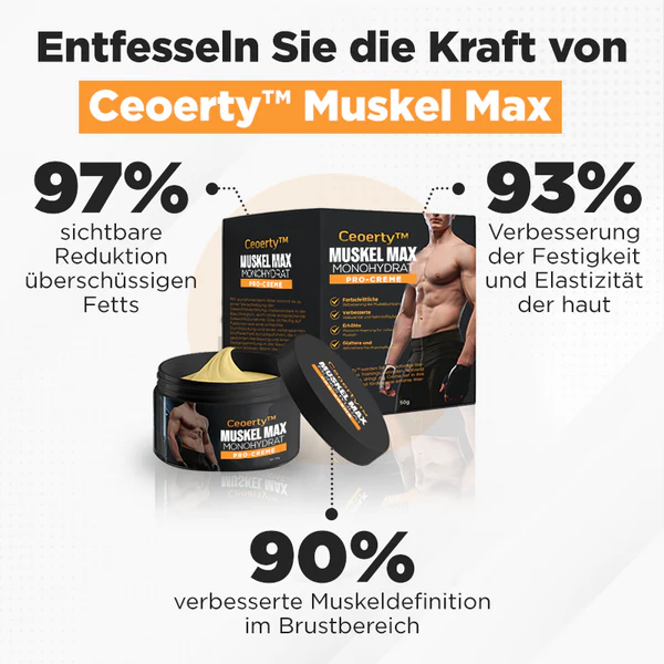 Einfach, aber effektiv – wir stellen vor: Ceoerty™ Muskel Max Monohydrat PRO-Creme, eine hochmoderne Muskelaufbau-Creme, die entwickelt wurde, um den Muskelaufbau und den Fettabbau während des ganzen Tages zu unterstützen. Unsere fortschrittliche Formel macht sich die bemerkenswerten Vorteile von Kreatinmonohydrat zunutze, einer bewährten Verbindung, die für ihre muskelaufbauenden Eigenschaften bekannt ist. Es dringt tief in die Muskeln ein, um das Muskelwachstum zu fördern, die Durchblutung zu verbessern und Muskelkater zu reduzieren. Dies führt zu einer verbesserten Vaskularität, wodurch Nährstoffe und Sauerstoff effizienter zu den Muskeln gelangen können. Erleben Sie ein völlig neues Maß an Muskelfülle und -definition, das Sie verblüffen wird.